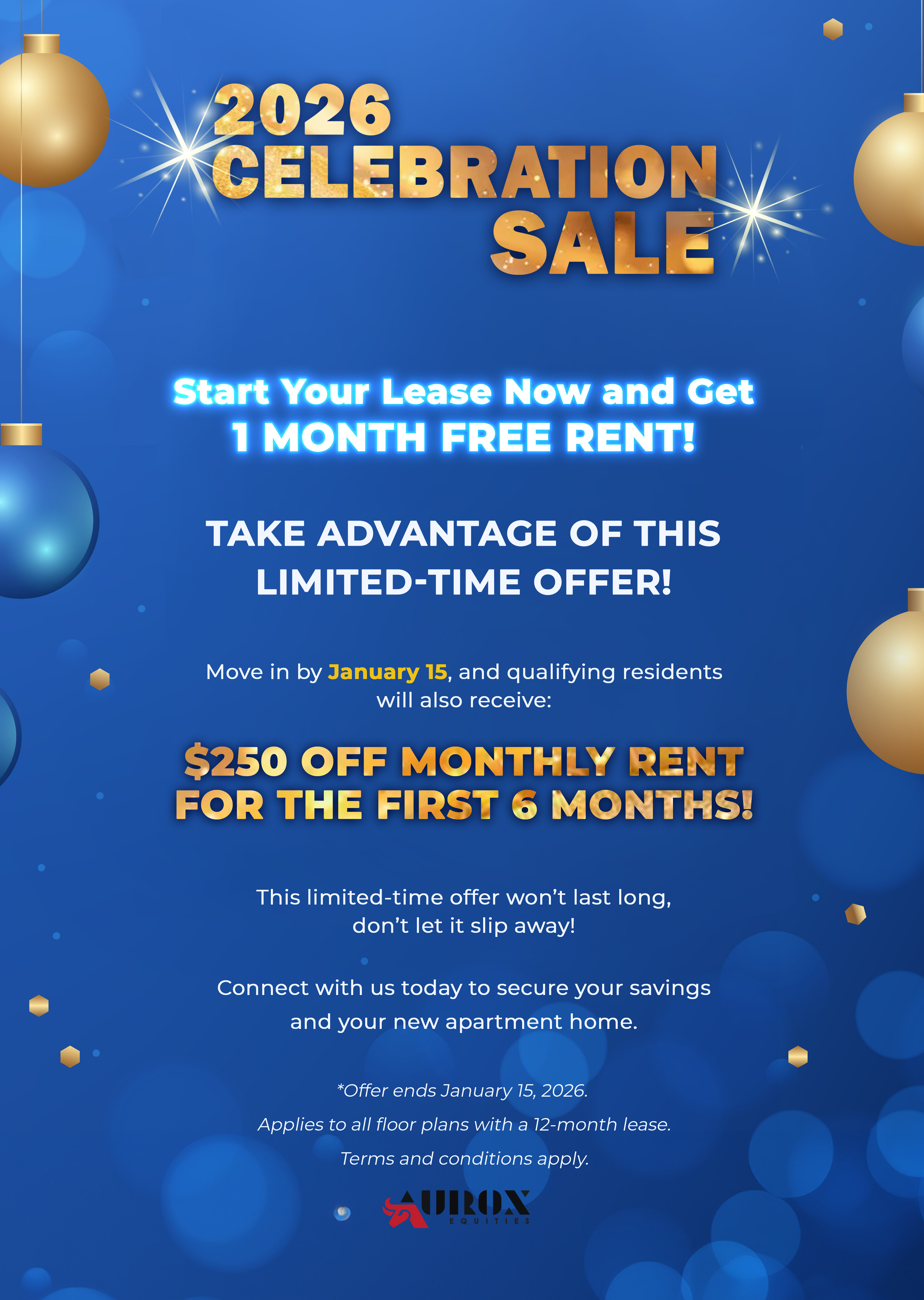 Move in by 01/15/2026 - Claim 1 Month FREE + $250 OFF for 6 Months